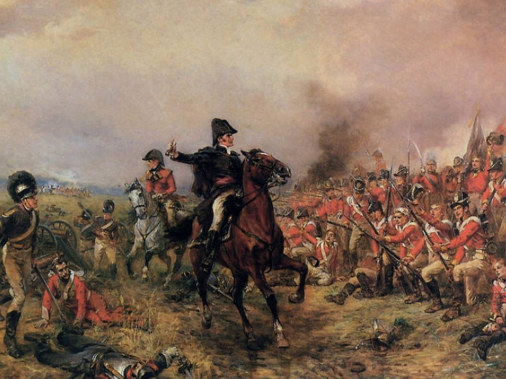 Hertigen av Wellington. Soldaterna har bildat en karré, en fyrkantig slagformation.