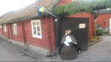 Måndagen den 7 december hedrade några medlemmar den ärevördiga staden Sigtuna med ett besök. Vädret var vackert och klart. Lite kallt var det men solen sken över såväl stad, ruiner som Mälaren. Besökarna gick runt och tittade på såväl några runstenar som de tre kyrkoruinerna sankt Lars, sankt Per och sankt Olov. Visst är det bra att kristendomen ligger i ruiner? Fast man kan inte gå in i ruinerna, ty rasrisk förefaller. Nu förfaller det ju som om rasrisk förekommer i hela landet men det är mer en politisk fråga än en kulturhistorisk. Den nuvarande kyrkan besöktes lite hastigt, men många epitafium fanns att beskåda samt några helgonbilder från medeltiden. Sigtunas rådhus från 1744 var dock stängt för säsongen och museet var låst, det var ju måndag och då har museum ofta stängt. Några butiker hedrades även de med besök och kaffe med dopp intog på ”Tant Bruns kaffestuga” som håller till i byggnader med rötterna i 1600-talet.
