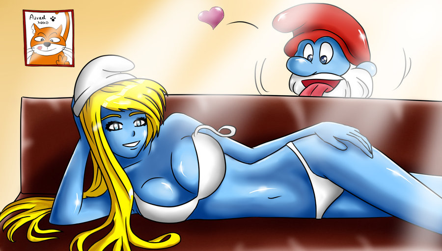 Erotik är ofta ett inslag i fanart. Vi fortsätter med våra smurfar och Gammelsmurf och Lilla Smurfan avbildas inte så här i serien om smurfarna. Konstnären har även gjort om karaktärerna. Damen på bilden är tecknad i japansk animestil.