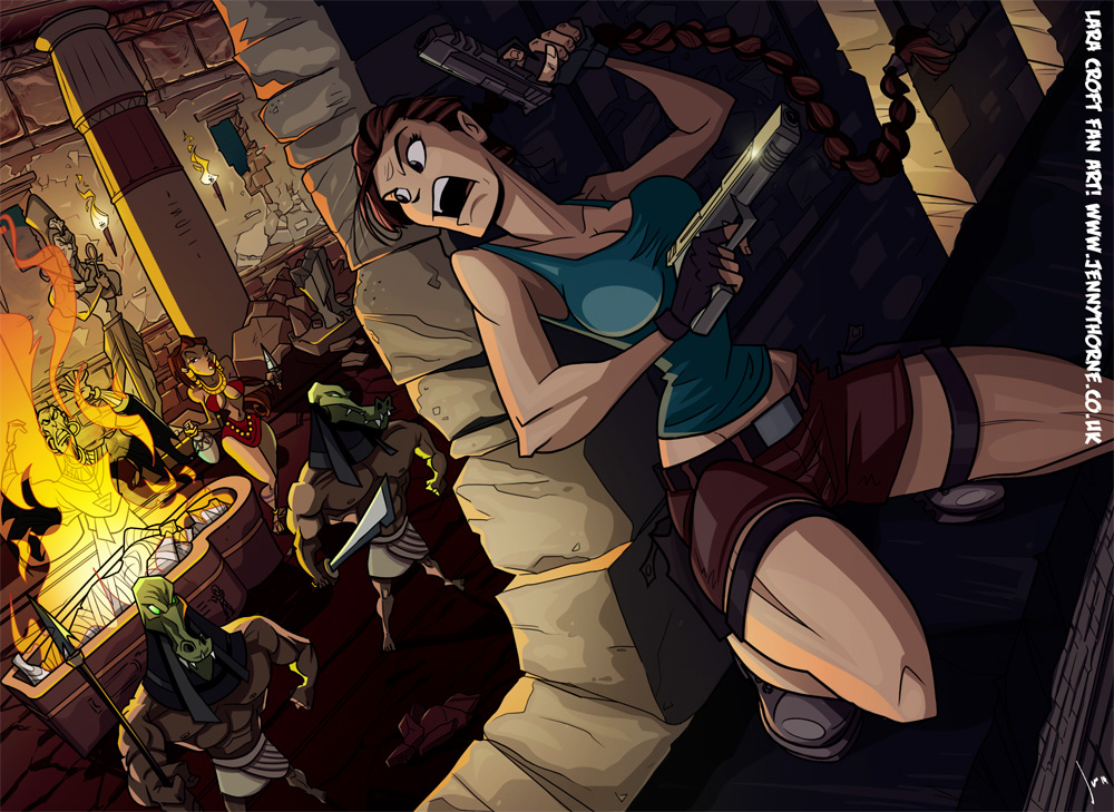 Tomb Raider var ett dataspel som blev filmer som blev fanart. Inslag av parodi finns i konstverket.