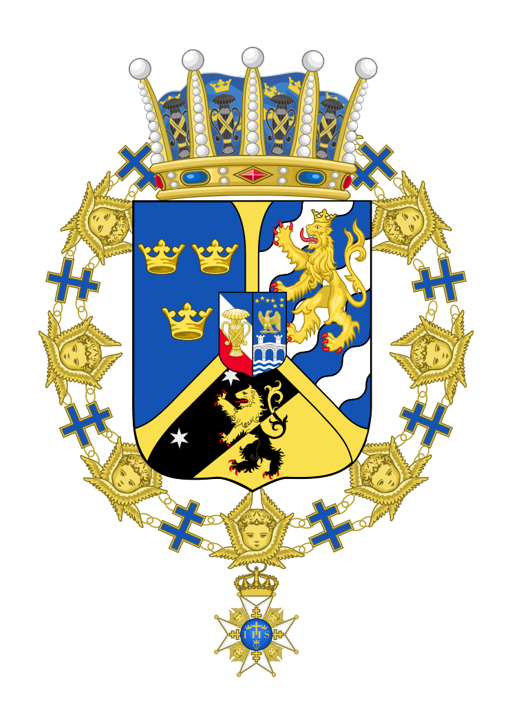 Prins Carl, hertig av Västergötlands vapen som det såg ut efter unionsupplösningen 1905 fram tills hans död. Serafimerorden kedja omgärdar vapnet. Carl levde mellan 1861-1951 och var son till Oscar II.