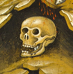 Jesus spikades upp och blodet strömmade från såren. Nu kom ju en del av blodet på Adams skalle, och detta brukar avbildas i konsten. Det ska då tolkas symboliskt att Jesus dog för de synder som Adam och Eva begått. Det är mycket väsen för ett äpple i denna monoteistiska religion…