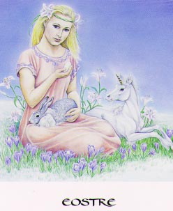 Hell Ostara, vårens gudinna, germanernas fruktbarhetsgudinna, hararnas beskyddare, vårdagjämningens härskarinna, ljuset och värmens budbärerska!