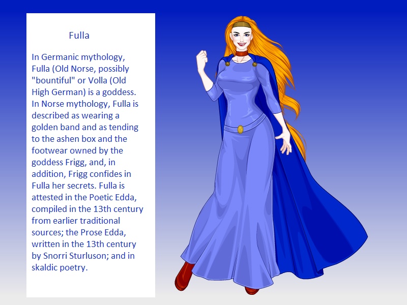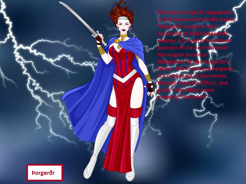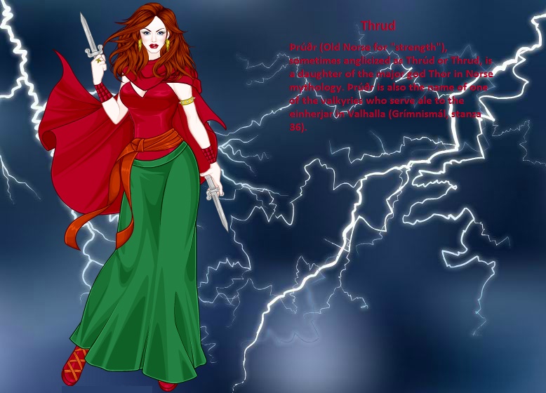 Enda ledtråden att denna bild föreställer Röskva förutom namnskylten är blixtarna, hon är ju ändock anställd hos dunderguden. Ingen större likhet med ”tjänstehjonet”.