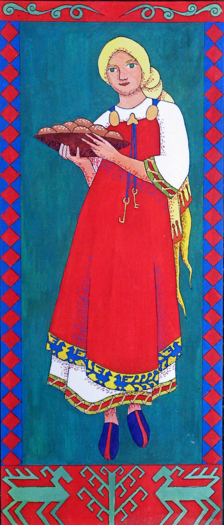 Denna bild hade lätt kunna tro vara Idun, men det är Röskva. Är väl egentligen bröd Tjalves syster serverar.
