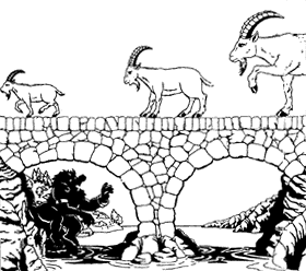 Sagan kan tolkas följande: Tor med sina bockar far ut från Asgård, de låter trollet vara så länge trollet håller sig under bron, i sin lya. Men när trollet kommer upp på bron då kommer den siste bocken och oskadliggör trollet.