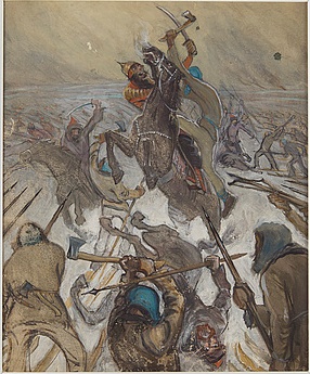 Det finns ingen samtida bild av slaget. Så här har en finsk konstnär tänk hur det gått till.