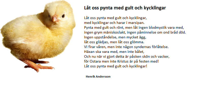 Gult har blivit påskens färg och det tror man kan härstamma från till exempel kycklingar, äggulan, påskliljor och tussilagon men även solen. Jesus återuppstår på söndagen och förr sa man att solen dansade av glädje denna dag.