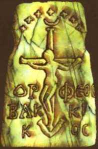 Dionysius på korset. Värt att notera att namnet Dionysius betyder ”guds son”. Avbildning från andra århundradet av vt.