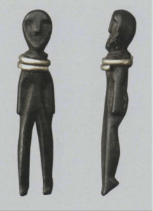 Kymbofiguren från folkvandringstiden. Tros föreställa den hängde Oden. Korsfästelse gjorde inte på germanskt område, men hängning praktiserades och Oden kallas den ”hängde guden”.