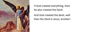 En mycket tarvlig bild. Den kristne kung Olov den helige står på en hedning. men hedningen ser ganska morsk ut. Han är slagen, men inte besegrad.