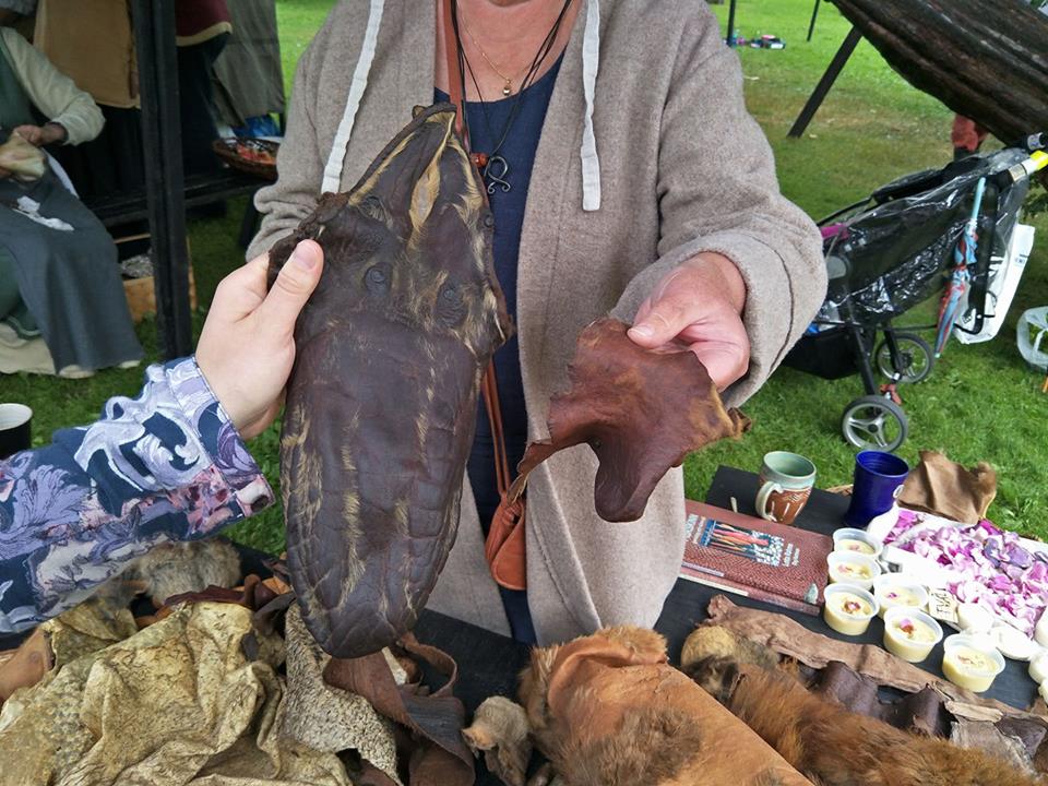 Sedan var det dags att gå omkring på marknaden! Sorgligt nog består en stor del av det som säljs på sådana marknader av billiga kopior av fornnordiska skyddsamuletter, tillverkade av skräpmetall någonstans i Pakistan eller Indien. Det förekommer även en hel del föremål utan synbar anknytning till den europeiska medeltiden, såsom musikinstrument av trä från länder som Thailand, och, åter igen, Indien. Det finns även en hel del föremål med anknytning till New Age, vilket nog måste betraktas som ett tidstypiskt tecken. Jag hade hellre sett fler autentiska hantverk med hednisk innebörd från östeuropeiska länder, som Finland, Polen, Ukraina och Ryssland. Tyvärr är det nog inte lönt för hantverkare att åka så pass långt för att sälja ganska billiga föremål. Vore kul om lokala, svenska hantverkare också gav sig på att tillverka och göra fler typer av forneuropeiska smycken förutom de skandinaviska; keltiska, germanska, ryska, finska och så vidare. Frågan är väl hur stort intresset kan tänkas vara…
