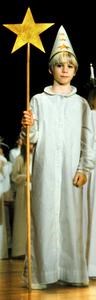 Den välmående stjärngossen med Lucia i bakgrunden. Av kyrka och stat prövad och godkänd.