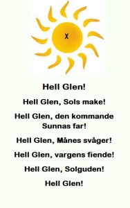 22 april 2018 ayps inträffar något hedniskt i almanackan. Dels är det söndag, solens dag men också att Glenn har namnsdag. Glenn är samma namn som Glen, fornnordiska Glenr. Glen är ju som alla asatroende vet namnet på asynjan Sols make. Gudinnan är solen medan Glen är solens strålar sm sänds till Midgård. Solsrålarna är nästan sm pilar och kanske är det så att guden Ull som förknippas med pil och båge är samme gud som Glen?