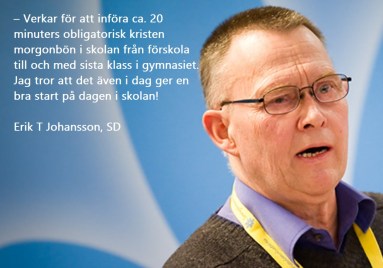 Ja läs citatet från denne sverigedemokrat från Värmland. Läs det en gång till för säkerhets skull. SD är ett parti som får stöd av allt fler. Det finns nog även i den hedniska världen folk som funderar på att rösta på på dem. Men tänk efter. De är vid sidan av kristdemokraterna riksdagens mest kristna parti. De är om man tar bort en del populism om invandring och integration bara en radikalare version av KD. Som hedning, som asatroende är det knappast meningsfullt att rösta på ett parti som dyrkar Jesus. Erik T Johanssons ord är inte utslag av en troende kristens enskilda tankar, nej hela SD genomsyras av kristendom. ”För oss Sverigedemokrater, vare sig vi är kristna eller inte, är Svenska kyrkan är en viktig del av vår svenska historia och vår svenska kultur som vi inte får förlora.” Citatet kommer från Sverigedemokraterna i Västergötland. Och SD ledaren själv ber ofta till sin osynlige gud.