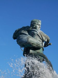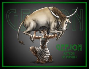Trots att hon haft barn med en jätte och blivit mor till danska kungahuset så är Frejas syster de ogifta kvinnornas beskyddare och de kvinnor och flickor som dör som oskulder tar Gefjon hand om. Freja tar i sin tur hand om stupade krigare så båda gudinnorna är på sätt och viss härskare för var sitt dödsrike. Eller så är ungmörnas rike en del av Frejas Folkvang. Plogen ses som en symbol för Gefjon och detta arbetsredskap kan nog sägas vara helgat åt henne. Ingen avbild har hittas som man vet föreställer Kung Skolds maka men den danska ön Gevnö anses vara namngiven efter henne och i gudasångerna i eddan nämns Gefjon. Hon är med i Lokasenna, Lokes träta där hon är en av de som anklagas av Loke. I den namntula som upptar 27 gudinnors namn är Gefjon nummer sex. Passande nog befinner hon sig mellan Gärd, brodern Frejs maka som också är en åkergudinna som hon själv samt Gnå som också hon är en gudarnas budbärerska för det var, som alla vet Oden som skickade ut Gefjon på sitt plöjningsuppdrag. I nuhednisk tid är det flera konstnärer som inspirerats till att avbilda Gefjon.