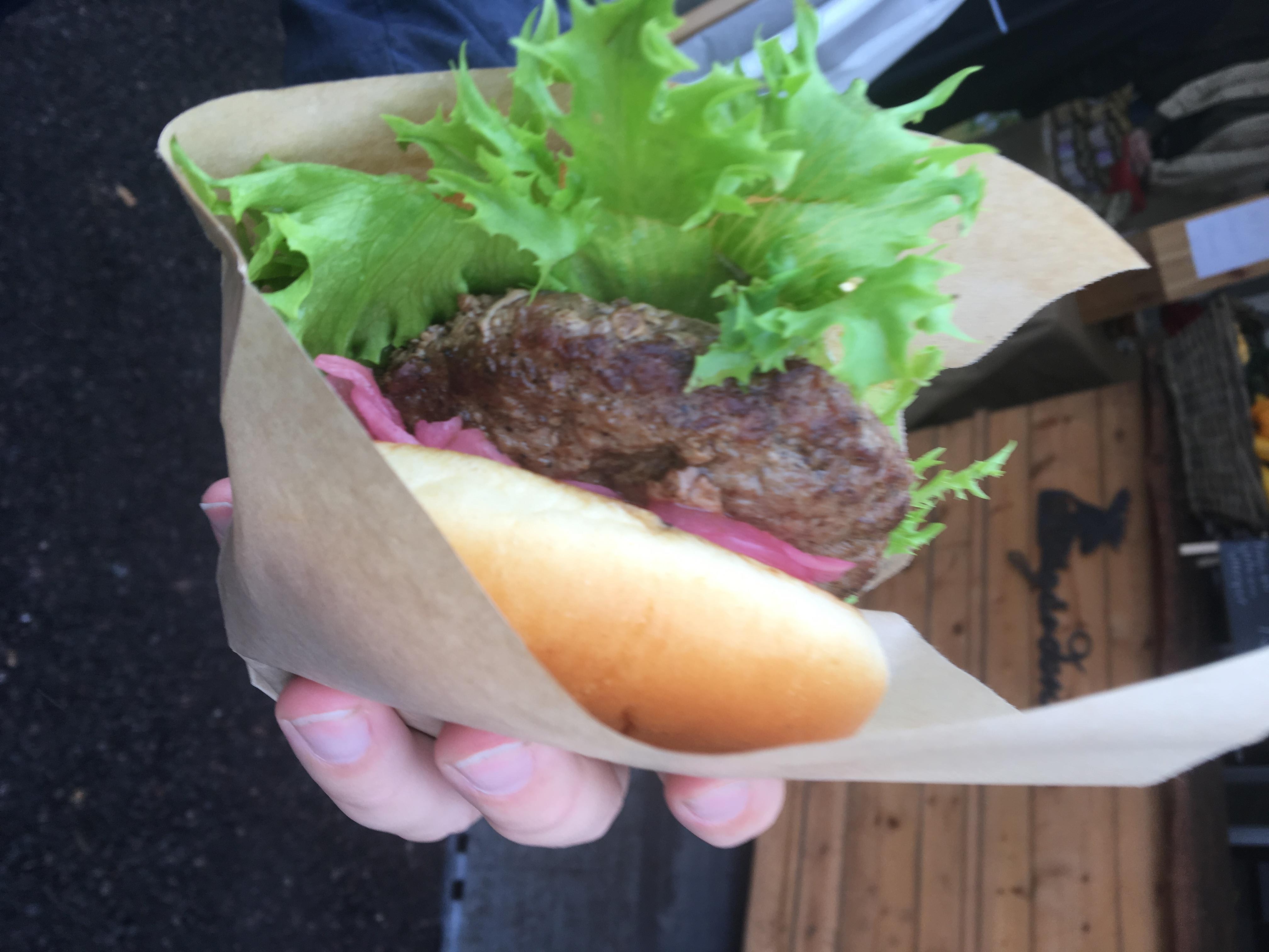 Hamburgare gjort på bisonkött köptes. Det finns en gård utanför Falköping där man sedan flera år tillbaka fött upp amerikanska bisonoxar men köttet av dessa var nog uppblandade med annat. Den främsta matförsäljningen skedde på Hertig Johans torg, uppkallad efter kung Johan III yngste son. Där fanns även valtält från de politiska partierna. Men politikerna höll sig föredömligt nog inne i sina tält och sprang inte runt som hungriga vargar och försökte ragga potentilla väljare. Kanske var de rädda för regnet? En tur ner mot kyrkparken gjordes men där hade inte aktiviteterna kommit i gång. Kaffe intogs på café belägget i gamla rådhuset byggnaden har anor från mitten av 1700 talet. En snabb titt gjordes slutligen på Sandtorget där massa åkattraktioner stod. Föreningen har ju som mål att försöka främja svensk matkultur och genom att besöka Skövde Matfestival så har man gjort ett försök.