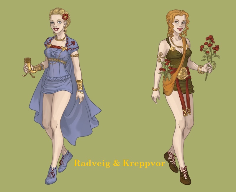 Two daughters are called Radveig and Kreppvor. We do not know so much about them, but we suppose they are fertility goddesses. Radveig is the oldest and Kreppvor is the youngest.