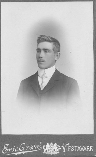 Troligen ungdom porträtt av kapen Boija. Theodor Boija föddes 1878 i Norrland, Blev kapten 1906.