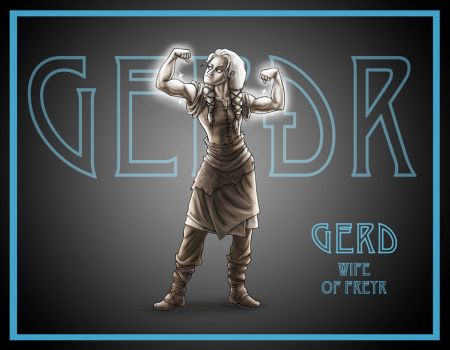 Frej och alla andra vaner förknippas med fruktbarhet och Gerd får sägas vara en fruktbarhetsgudinna. Skalderna har nämnt Gerd och man tror ha funnit guldplåtar som avbildar Gerd med sin make. På det berömda Gosforth Cross finns det två figurer som tris föreställa Skirner och Gerd. I den namntula som tar upp 27 asynjors namn är Gerd listan högt. Frejs maka har nummer fem.