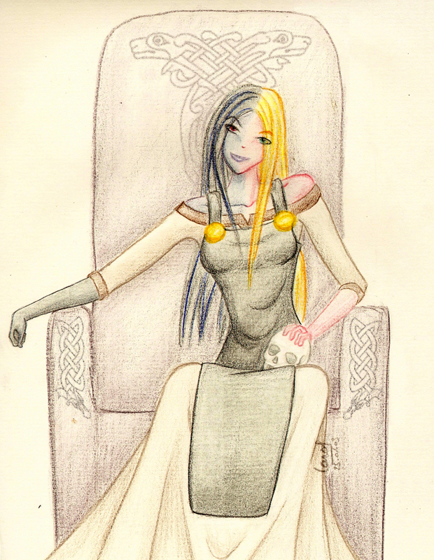 En väldigt abstrakt avbildning av Hel. I sin enkelhet ganska bra. Döden är här vare sig ond eller god.