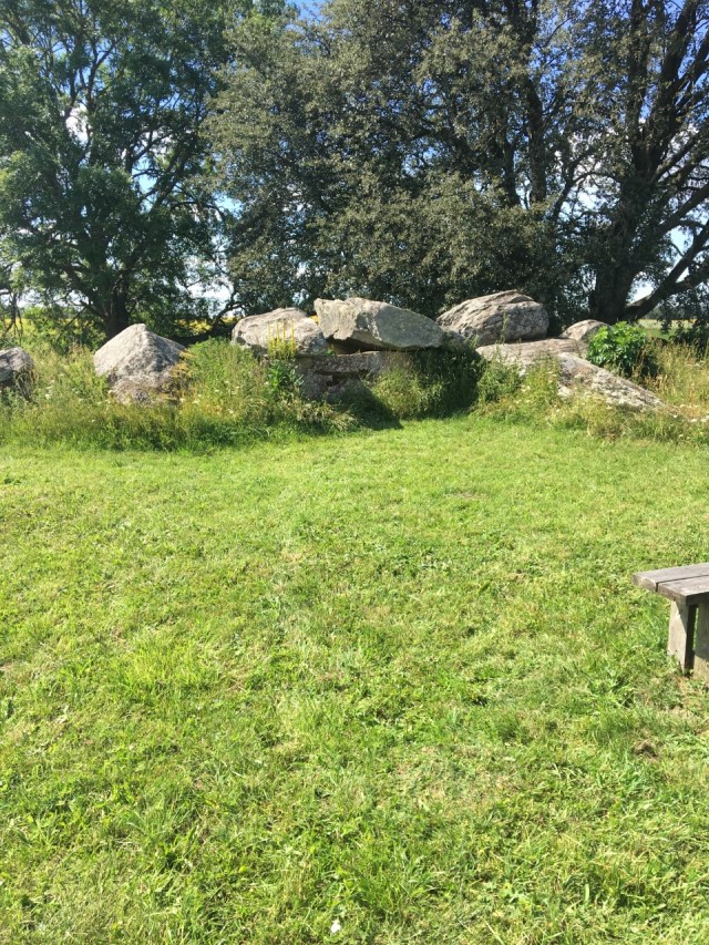 Tre gånggrifter besöktes. Den första var förstås den största. Störst inte bara i Sverige utan i hela Skadinavien. Den kallas Ragnavalds grav och här tros Knaphövde mist livet. Kammaren i gånggriften är 16 x 2.5 meter men gången in till denna är hela 11 meter. Det finns skålgropar på ”taket”. Givetvis är gånggrifterna äldre än den medeltida regenten som dödades här då de härstammar från bronsåldern.