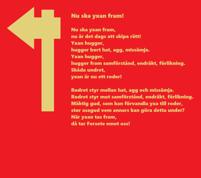 Dikt: Nu ska yxan fram! Sep13 av Ideell Kulturkamp Dela detta: Dela på X (Öppnas i ett nytt fönster) X Dela på Facebook (Öppnas i ett nytt fönster) Facebook Gilla Laddar in …