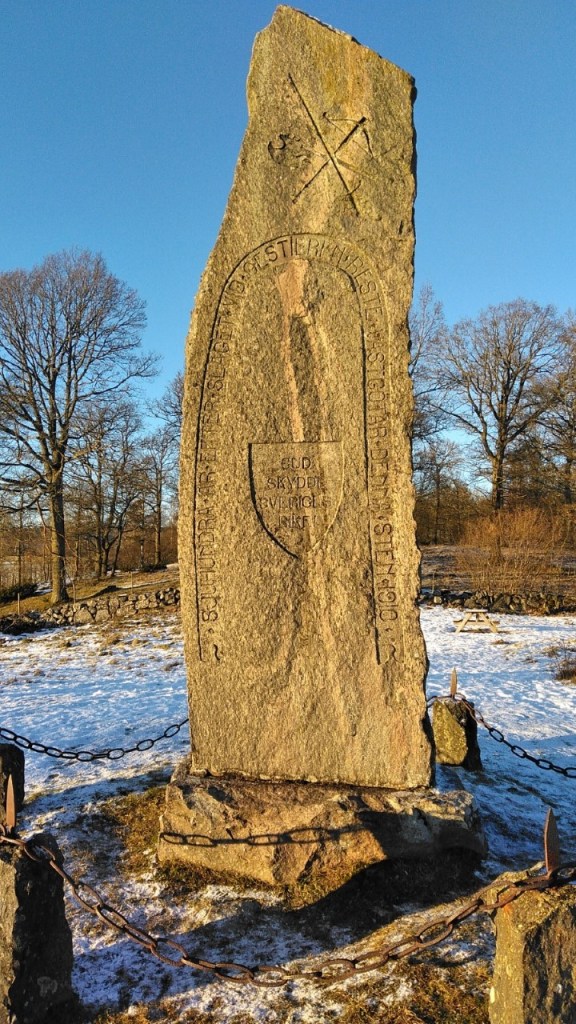 Minnesstenen över slaget som restes 1910 och invigdes av prins Eugen är synlig från vägen. Bakom denna finns ett gravfält från förkristen tid.