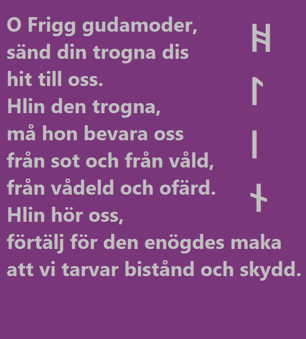 Vintersolståndet infaller som det brukar göra den 21 december. 2021 infaller årets mörkaste dag på Tyrs dag. Många hedningar firar sitt midvinterblot denna dag och vi önskar dem en trevlig högtid. Föreningen har uppmärksammat Hlin asynjan som skyddar och vakar över människorna och står Frigg nära extra mycket under året. Vi hoppas att Hlin skyddar er i dessa svåra tider. Hell Hlin!