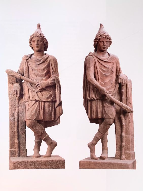 Hedningar från Skandinavien kom i kontakt under senantiken med den romerska myterikulten mithraism som handlar om dyrkan av den indoeuropeiske guden Mithra. Denne blev sedan känd som Mithotyn. Mithra burkar avbildas när han utför tauroctonin offrandet av en tjur. Mithra avbildas då med två medhjälpare kallade Cautes och. De är identiskt klädda i ”persika kläder” båda håller i var sin fackla men Cautes håller sin brinnande och upprätt, Cautopates håller sin nedåtvänd och släkt. Tolkningen är att de kan avbilda dag och natt men också dagjämningarna. Cautes är då vårdagjämningen och höstdagjämningen är Cautopates. Ofta brukar de avbildas med benen i kors. Cautes tycks avbildas i ljusare kläder och Cautopates i mörkare.