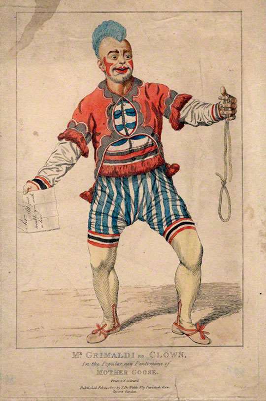 Ja vad ska man säga? Mister Grimaldi uppträder som clown. Han skulle nog göra succé som punkare hundrafemtio år senare eller?