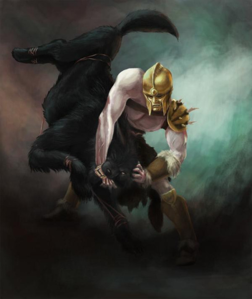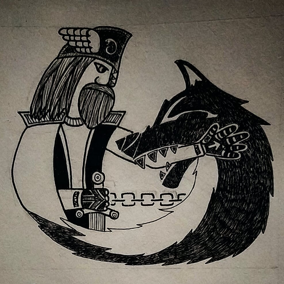 En av de mest dramatiska händelserna i asatron är berättelsen om när asarna ska binda Fenrir. Som alla hedningar vet så lyckas detta först när Tyr stoppar sin hand i gapet på Fenrir efter det de har trätt Gleipner den av dvärgarna tillverkade bojan som ska hålla fast monstret. dessvärre så mister Tyr sin hand men gudarnas fiende är bunden intill ragnarök. Många konstnärer har återgett denna dramatiska händelse och några exemplar härpå visas här.