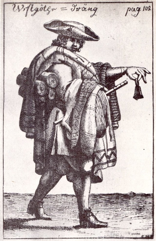 I södra Västergötland i häraderna Gäsene, Ås, Veden, Bollebygd, Mark, Kind och Redväg, de så kallade Sjuhäradsbygden började det redan på 1500-talet tillverkas det vi idag kallar hemslöjd som man sålde genom att gå från gård till gård för att sälja. Detta sågs väl inte med glada ögon av makthavarna alla gånger men trots detta fortsatte handeln. Karl XI lät dock folket i Sjuhäradsbygden få privilegiet att syssla med denna handel. Knallarna som säljarna kallades började även köpa upp föremål och gods för avyttring. Handeln försvann omkring sekelskiftet 1900 men något av dess minnen och traditioner lever väl kvar. Knallarna talade en eget ”språk”så kallad månsing och ord som stålar (pengar), fjälla (pengar) och spänn (en krona) lever vidare.