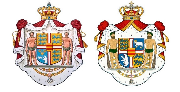 Det gamla och det nya vapnet. Även dannebrogskorset i skölden har modifierats. bildkälla: Pinterest.